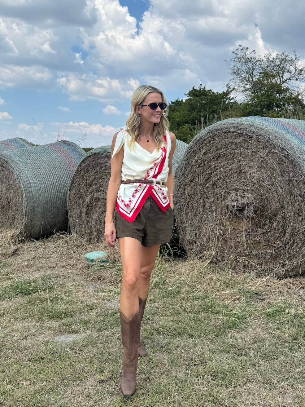 MASON'S DAUGHTER | Lily Scarf Top, Red & White Silk Twill