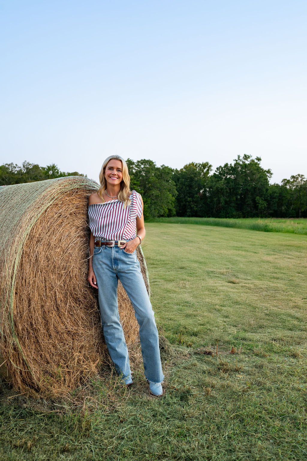 MASONS DAUGHTER | Lily Scarf Top, Blue & Burgundy Striped