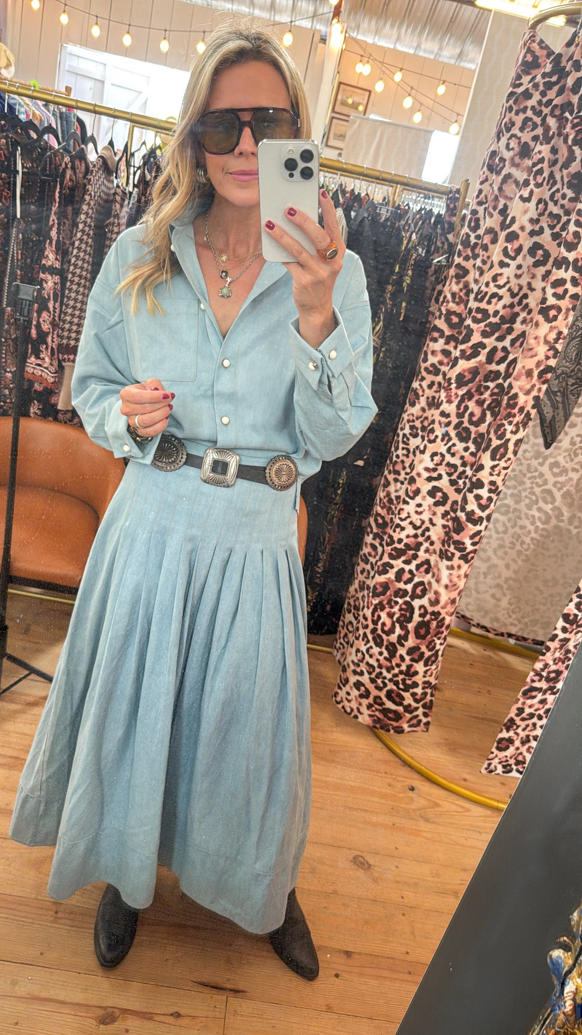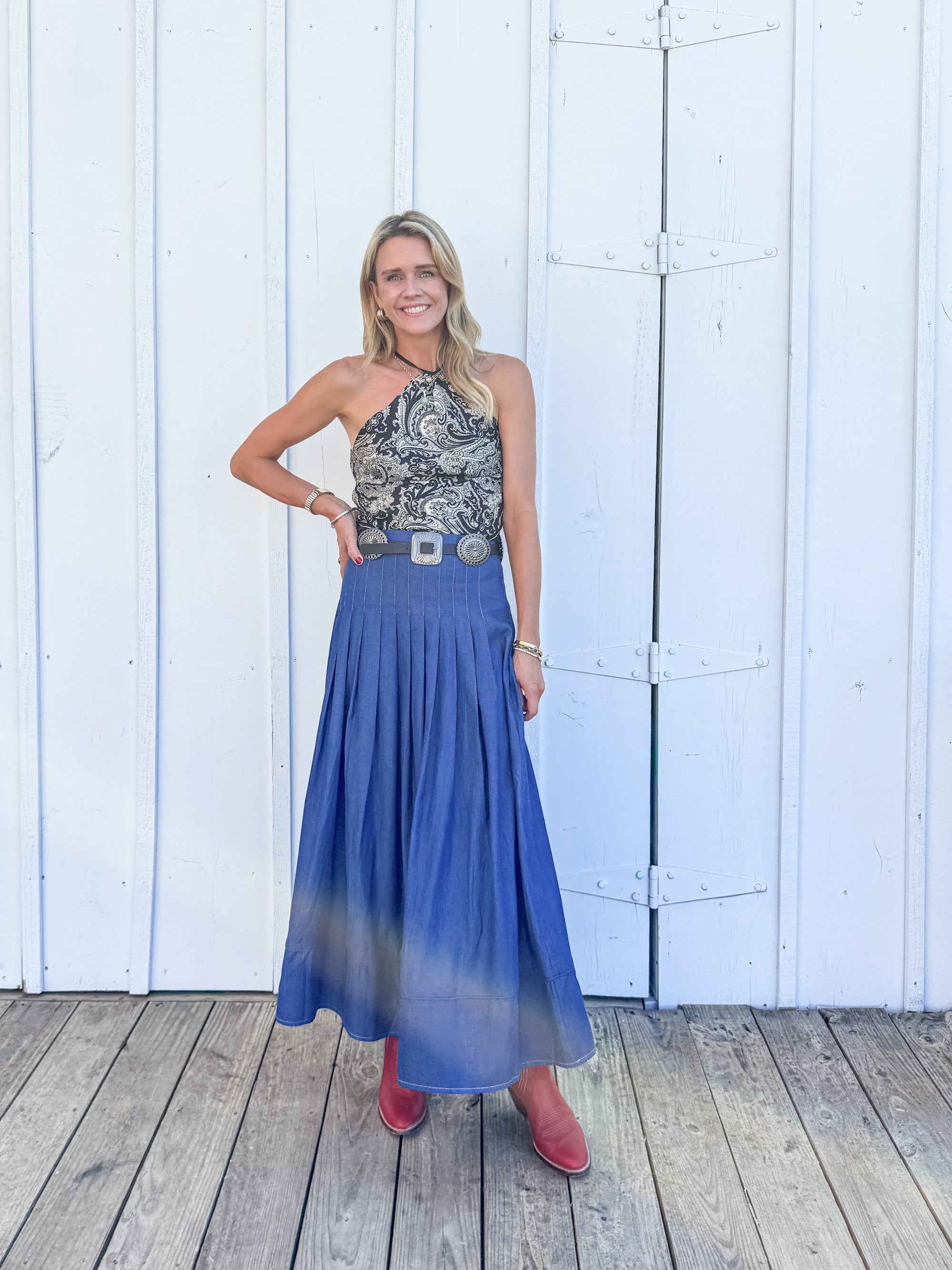MASON'S DAUGHTER Emma Skirt, Stone Wash Chambray